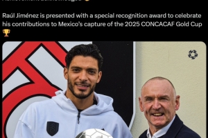 PFA官方表示:“勞爾-希門尼斯獲得了一項特別表彰獎,以紀念他為墨西哥隊贏得2025年中北美及加勒比地區(qū)金杯賽冠軍所做出的貢獻?!?/p>