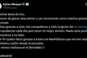 體育資訊10月31日訊 不久前,獲得歐洲金靴的皇馬前鋒姆巴佩更新社交媒體,感謝了隊(duì)友和球迷的支持。