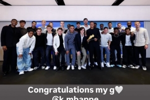 貝林厄姆也通過社媒曬出了皇馬全隊(duì)同手持金靴獎杯姆巴佩的合影,并配文:“祝賀我的兄弟@姆巴佩”。