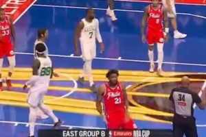 GIF-恩比德打成2+1,做不雅慶祝動作