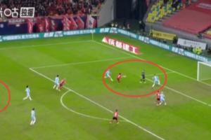 其實在河南隊周緣德手球后、蓉城胡荷韜射門瞬間,主裁判艾堃就已鳴哨吹罰了河南隊手球犯規(guī)。蓉城眾將慶祝完進(jìn)球后一臉難以置信,圍住主裁要說法,艾堃向球員們解釋判罰,但堅持判給蓉城禁區(qū)外的任意球,并向手球的周緣德出示黃牌。同時VAR檢查完畢,判罰決定是進(jìn)球無效。