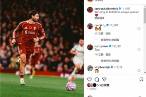 索博斯洛伊當選利物浦隊內(nèi)最佳球員,他在社交媒體上慶祝勝利:“在安菲爾德取勝總是很特別?!?/p>
