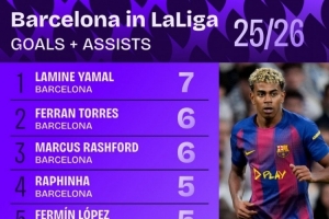 巴薩本賽季聯(lián)賽參與進(jìn)球榜: