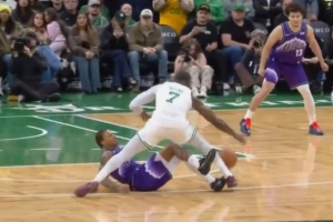 GIF-杰倫-布朗遭飛鏟,沒(méi)有被吹犯規(guī)