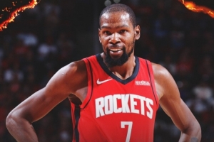 賽后火箭官方曬出贏球海報(bào),封面人物是杜蘭特。
