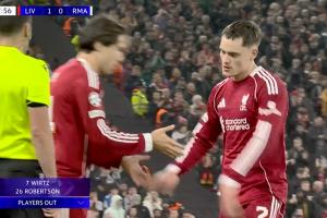 體育資訊11月05日訊 歐冠第4輪利物浦vs皇馬第89分鐘,利物浦再次做出2個換人調整,維爾茨、羅伯遜被換下,凱爾凱茲、基耶薩替補登場。