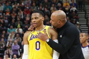 今日,湖人記者Harrison Faigen在個人社交媒體上發(fā)布了一張圖(如下),并配文:“只有一個人能執(zhí)教拉文+莫蘭特+威少的后場?!?/p>