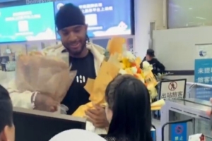 11月4日深夜,山東高速男籃大外援克里斯回到濟(jì)南,在濟(jì)南遙墻機(jī)場(chǎng)受到俱樂(lè)部和球迷熱情歡迎。