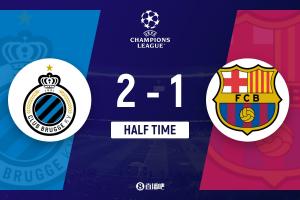 上半場(chǎng)傷停補(bǔ)時(shí)2分鐘,半場(chǎng)結(jié)束,巴薩暫1-2布魯日。