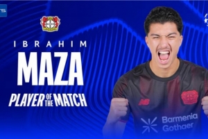 此役馬扎踢滿(mǎn)全場(chǎng),幫助勒沃庫(kù)森取勝,他當(dāng)選歐冠官方本場(chǎng)比賽最佳球員。