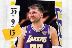 賽后湖人官方發(fā)布東契奇數(shù)據(jù)海報(bào):“對于盧卡來說又一個(gè)表現(xiàn)出色的夜晚。”