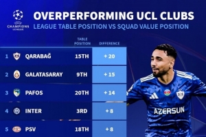 體育資訊11月6日訊 德國(guó)轉(zhuǎn)會(huì)市場(chǎng)根據(jù)球隊(duì)目前歐冠排名與陣容身價(jià)排名的差異,列出本賽季歐冠表現(xiàn)超出預(yù)期球隊(duì)榜單,卡拉巴赫居首。