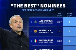 體育資訊11月7日訊 FIFA公布年度最佳男足教練候選名單,德國(guó)轉(zhuǎn)會(huì)市場(chǎng)列出了入圍者上賽季的成績(jī)。