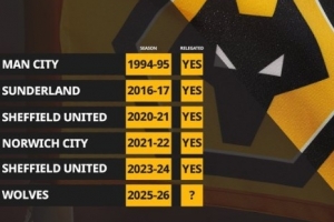 根據(jù)OPTA的數(shù)據(jù)統(tǒng)計,在英超歷史上,10輪比賽僅拿兩分或者更少積分的球隊最終都難逃降級厄運。此前,1995-96賽季的曼城(2分)、2016-17賽季的桑德蘭(2分)、2020-21賽季以及2023-24賽季的謝菲聯(lián)(1分)、2021-22賽季的諾維奇(2分),這些球隊無一例外最終降級。