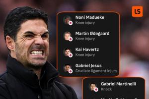 目前,哈弗茨、馬杜埃凱、馬丁內利、約克雷斯仍處于傷病未愈的狀態(tài),熱蘇斯剛剛回歸訓練,槍手一線隊前鋒僅特羅薩德和薩卡兩人健康能夠上場,中場梅里諾還客串出任首發(fā)中鋒。