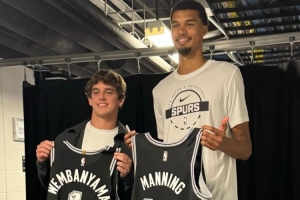 下一篇: 德克薩斯大學(xué)橄欖球隊成員觀戰(zhàn)馬刺 星三代曼寧與文班合影換球衣
