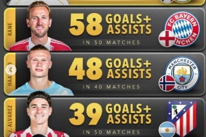 體育資訊11月10日訊 數(shù)據(jù)網(wǎng)站Score90盤點(diǎn)了2025年五大聯(lián)賽前鋒球員,在各項(xiàng)賽事(俱樂部+國(guó)家隊(duì))參與進(jìn)球榜,其中姆巴佩62球居首,以下為具體情況(進(jìn)球+助攻):
