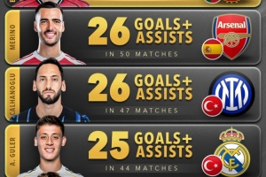 下一篇: 2025年中場參與進球榜:B費28球居首,梅里諾、恰爾汗奧盧26球