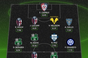 后衛(wèi):霍爾姆(博洛尼亞,7.98分)、盧庫(kù)米(博洛尼亞,8.25分)、維克托·尼爾森(維羅納,8.19分)、安東尼諾·加略(萊切,7.59分)