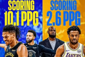 湖人2024年55號秀布朗尼本賽季場均2.6分;勇士2025年56號秀理查德場均10.1分。