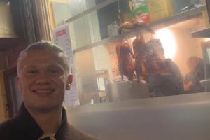 哈蘭德現(xiàn)身曼城一家餐廳,點(diǎn)了一份包含鴨肉和豬肉在內(nèi)的烤肉。哈蘭德的到來讓這家店員們都驚訝不已。