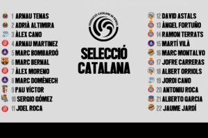 1-特納斯(比利亞雷亞爾)、2-阿爾蒂米拉(比利亞雷亞爾)、3-亞歷克斯·卡諾(CE歐羅巴)、4-阿爾瑙·馬丁內(nèi)斯(赫羅納)、5-邦巴(安道爾FC)、6-伯納爾(巴薩)、7-亞歷克斯·莫雷諾(赫羅納)、8-馬克·多梅內(nèi)克(安道爾FC)、9-保·維克托(布拉加)、10-塞爾吉奧·戈麥斯(皇家社會(huì))、11-喬爾·羅卡(赫羅納)、12-阿斯塔爾斯(薩瓦德?tīng)栿w育)、13-福圖尼奧(西班牙人)、14-特拉茨(西班牙人)、15-馬蒂·維拉(安道爾FC)、16-蒙塔爾沃(塔拉戈納體操)、17-喬弗雷·卡雷拉斯(西班牙人)、18-奧里爾斯(薩瓦德?tīng)栿w育)、19-喬迪·卡諾(CE歐羅巴)、20-安東尼奧·羅卡(西班牙人)、21-阿爾伯托·加西亞(圣安德魯聯(lián)盟)、22-雅爾迪(塔拉戈納體操)