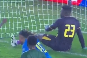 第91分鐘,民主剛果由后衛(wèi)姆貝巴在角球中攻破球門,奧納納伸腳但是沒(méi)能擋住皮球打進(jìn)近角,被進(jìn)球后癱坐在地↓