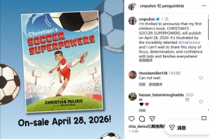 體育資訊11月15日訊 普利西奇通過(guò)社交媒體宣布,將出版兒童讀物在美國(guó)的孩童群體中宣傳足球。
