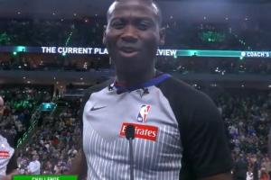 “我們都沒看到是誰出界,判罰結果是隨便來兩個人(any two)中圈跳球。雄鹿對這球提出了挑戰(zhàn)。”
