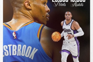 體育資訊11月16日訊 在昨天NBA杯國王VS森林狼的比賽中,威少生涯總助攻數(shù)突破10000次大關(guān),成為繼詹姆斯之后,NBA歷史第二位生涯取得25000分和10000助攻的球員。