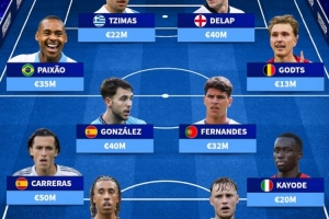 后衛(wèi):卡拉雷斯(西班牙,5000萬)、約羅(法國,5500萬)、薩姆·別克馬(荷蘭,2800萬)、卡約德(意大利,2000萬)
