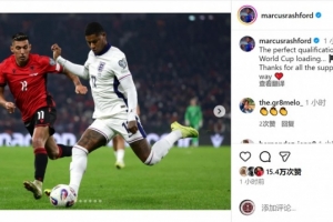 拉什福德社媒曬出比賽照片,并寫(xiě)道:“完美的世預(yù)賽之旅!世界杯即將到來(lái),感謝大家一路以來(lái)的支持?!?/p>
