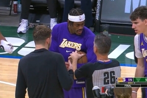 體育資訊11月17日訊 昨天湖人戰(zhàn)勝雄鹿的賽后,雙方球員以及裁判針對(duì)比賽用球展開(kāi)了一段拉扯。