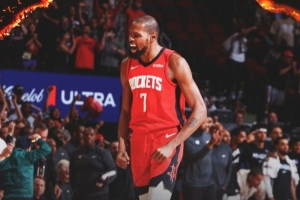 末節(jié)杜蘭特連中關鍵三分,加時賽的中投也幫助火箭擴大優(yōu)勢。