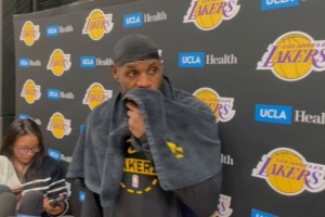體育資訊11月18日訊 今日,湖人前鋒詹姆斯在訓練后接受了采訪。