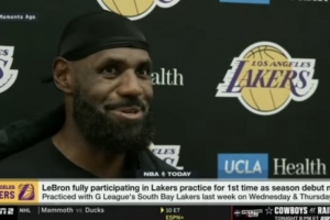 體育資訊11月18日訊 今日,湖人前鋒詹姆斯在訓練后接受了采訪。