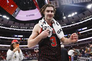 據(jù)數(shù)據(jù)美媒Real Sports統(tǒng)計,吉迪賽季前11場達成200+100+100,是公牛隊史單賽季最快達到這一數(shù)據(jù)的球員。