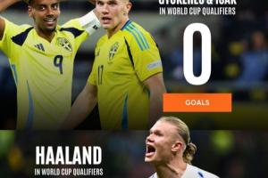 體育資訊11月18日訊 歐洲區(qū)世預(yù)賽已經(jīng)接近尾聲,哈蘭德率領(lǐng)的挪威8戰(zhàn)全勝挺進(jìn)世界杯,他本人更是8場(chǎng)16球領(lǐng)跑射手榜,與另一支擁有豪華鋒線的球隊(duì)瑞典形成了鮮明反差。