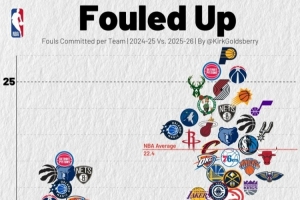上賽季聯(lián)盟各隊(duì)場均罰球數(shù)為19.1次;本賽季該數(shù)據(jù)為22.4次。(數(shù)據(jù)截至今日賽前)