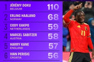 世歐預(yù)對方禁區(qū)觸球榜:多庫斷崖領(lǐng)跑,哈蘭德、加克波、凱恩在列