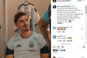 體育資訊11月20日訊 斯特拉斯堡中鋒帕尼切利在對(duì)陣安哥拉的比賽中上演阿根廷隊(duì)首秀,他在社交媒體上發(fā)文,表達(dá)了自己的激動(dòng)之情。