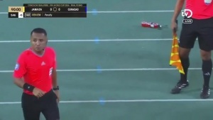 此役牙買加第95分鐘獲點(diǎn)球,原本有機(jī)會(huì)1-0讀秒絕殺庫(kù)拉索,直通美加墨世界杯。然而裁判看完VAR后取消點(diǎn)球,牙買加最終無(wú)緣直通。當(dāng)點(diǎn)球被取消時(shí),庫(kù)拉索電視臺(tái)的解說(shuō)員瘋狂慶祝,鬼哭狼嚎。