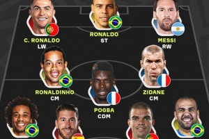 中場(chǎng):齊達(dá)內(nèi)、博格巴、小羅