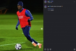 體育資訊11月21日訊 巴黎官方社媒曬照,努諾·門德斯參加訓練。