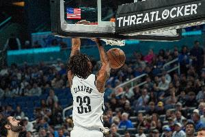籃網(wǎng)中鋒克拉克斯頓上半場效率不俗但罰球很鐵,他打了16分半鐘,8投5中、罰球5中2,得到12分9籃板4助攻,正負值高達+20!