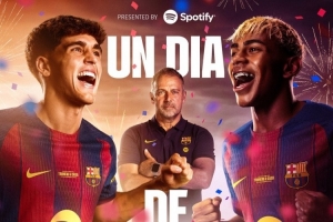 巴薩官方社媒發(fā)布了為此役制作的海報,主帥弗里克攜亞馬爾、庫巴西出鏡,背景則是諾坎普球場。