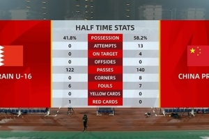 附國少隊(duì)vs巴林半場數(shù)據(jù)(巴林在前):
