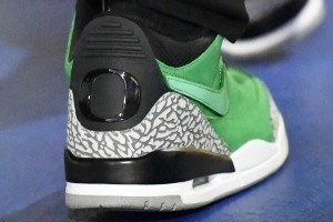 賽前,庫里入場時(shí)穿著的是俄勒岡大學(xué)的專屬Air Jordan 3 PE,通常來說這類球鞋是不市售、僅供球隊(duì)內(nèi)部的。但還是會(huì)有相關(guān)人員拿出來售賣,這雙球鞋在二級(jí)市場的價(jià)格接近8000美元。