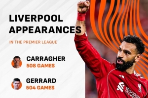 此役是薩拉赫代表利物浦出戰(zhàn)的第300場英超,英超出場次數(shù)位列利物浦隊(duì)史第五。