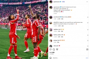 下一篇: 于帕社媒曬慶祝照:6球逆轉(zhuǎn)證明了拜仁的韌性 很高興打開進(jìn)球賬戶